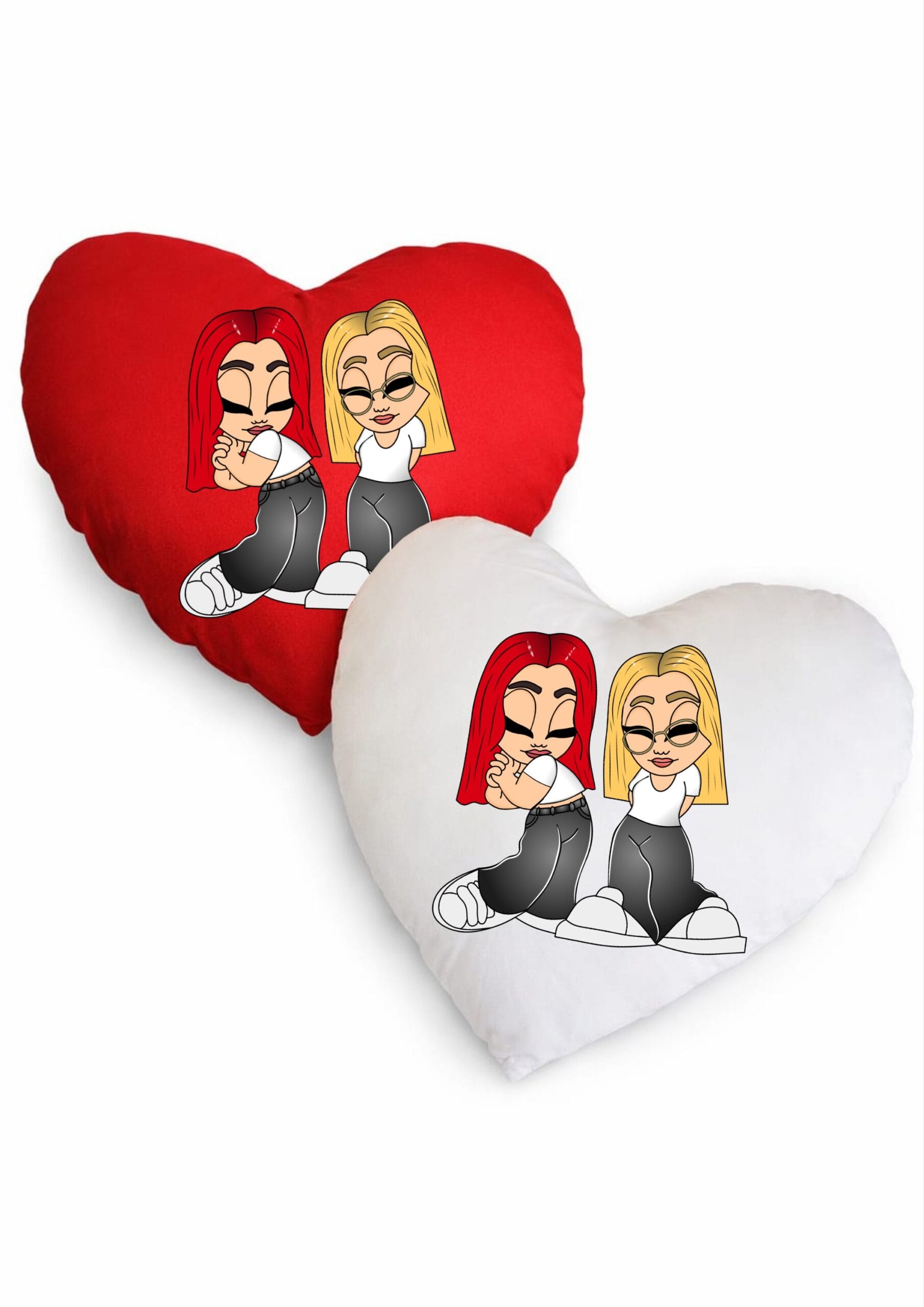 Transformă un desen cartoon într-un obiect care chiar se simte. Setul de 2 perne în formă de inimă este creat special pentru voi, personalizat după pozele tale și gândit ca un cadou care rămâne.
